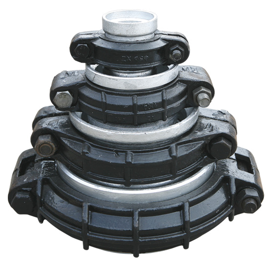 卡箍式柔性管接头是一种新型管道连接器,它利用介质产生的压力和密封圈的自紧力,对介质进行密封。适用于电力、矿山、化工、环保等部门的地面或井下供排水、输送煤、砂、灰碴等管路的连接。