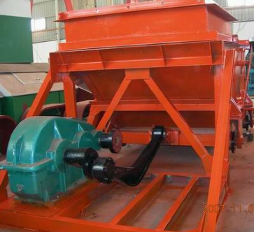 K型往复式给煤机由机架、底板(给料槽)、传动平台、漏头号、闸门、托辊组成,当电机开动后经弹性联轴器、减速机、曲柄连杆机构拖动倾斜5度的底板在辊上作直线往复运动,料均匀地卸到其它设备上。本机可根据需要设有带漏斗、不带漏斗两种形式。本机可根据需要设有带漏斗、不带漏斗两种形式。