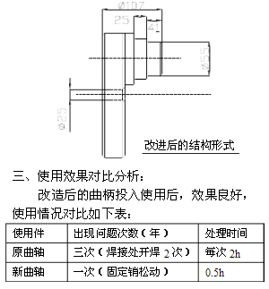 由以上对比可以明显看出,改进后事故率明显降低,没有出现焊接件开焊问题,仅出现固定销松动一次,处理时间只用了半小时。新、旧曲轴对比改进后可以增加效益(按较小煤量200吨/h、有50%的处理时间在生产班计算):3.5×50%×200×400=140000元,再减去增加的制造费用3500元(虽然曲柄的重量小,但是由于改进后的新曲轴加工工艺较为复杂,制造价格有所增加),每年可为矿增加的效益还是十分明显。