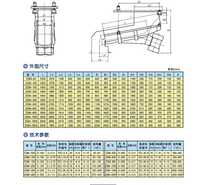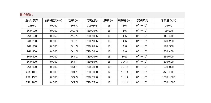 K型往复式给料机(往复式给煤机)技术参数表: