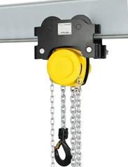组合式手拉葫芦指的是将单轨小车和手拉葫芦组合起来使用,两者紧密结合,可以节省更多的净空空间,提高货物的起升高度,并且可以通过调节螺母垫片来调节小车的夹钳宽度使之和运行工字钢之间更加契合,操作方便又实用。