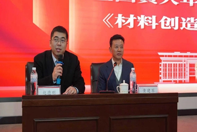 专题报告由材料科学与工程学院院长赵德刚主持。黄建军董事长以“材料创造美好未来”为题作专题报告。报告系统梳理了水泥产业的发展历程,深入阐释了当前水泥领域的技术水平,并详细介绍了我国水泥技术应用海外的发展现状。他结合专业视角与行业洞察,提出了水泥产业未来在绿色低碳技术创新、智能化生产体系构建、环境保护协同处置等方面的重点发展方向。在报告会研讨环节,现场学生反响热烈、踊跃提问。黄建军董事长围绕水泥生产技术前沿等议题,与师生们展开了深入交流。他表示,材料科学发展永无止境,材料科学与工程专业前景广阔,通过深入互动,不仅生动展现了他对水泥材料领域的热切期盼,也以自身的阅历与成就,为学子们的职业发展指明了方向、树立了楷模。