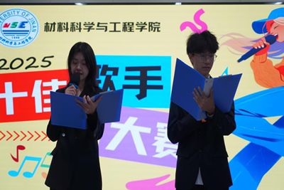 为深入学习贯彻党的二十届四中全会精神,落实高校美育工作的相关要求,提升学生的审美能力与人文素养,引导济大学子以昂扬歌声抒发爱国情怀与青春理想,11月8日,济南大学材料科学与工程学院在多功能厅成功举办了第二十四届校园十佳歌手大赛院级选拔赛。自大赛启动以来,全院学生积极响应,热情参与。本次比赛由李晓曼和张李映尧同学主持,并邀请了学生会主席王舰浩、团创工作站站长王艺萱、自律会主任陈世苗、新闻宣传工作站采编部部长钟小雅、“青春无悔”青年志愿者协会主席张昕羽、文体部副部长王璇琦、李晨龙、王若冰、张靖瑜、胡智尧担任评委。