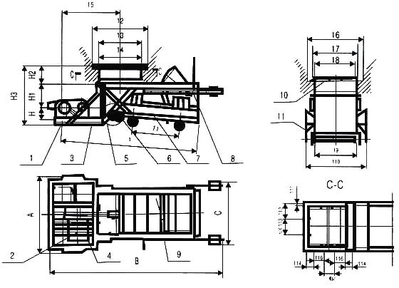 1、K型往复式给料机有带漏斗与不带漏斗及带调节闸门与不带闸门组合成的多种型式,如带漏斗,带调节闸门;带漏斗不带调节闸门。