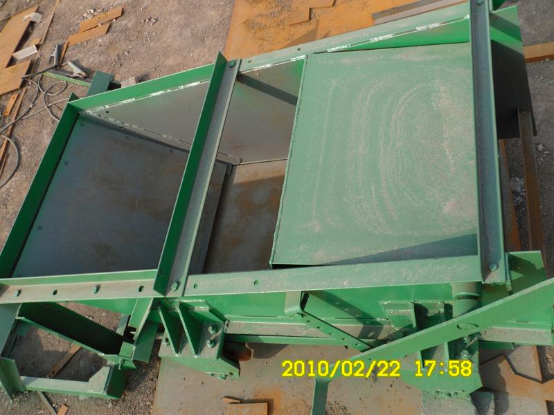 往复式给料机是一种由料斗或料仓给料的给料装置。这种给料机的往复运动的底板安装在料斗的下面,呈水平或微倾斜安装,底板支承在滚轴上,由偏心轴通过连杆驱动,带动给料机在滚轴上往复运动。闸门用来调节给料机上料层的厚度。当底板在连杆驱动下向前运动时,其上的物料受到向前运动的惯性力,克服物料与底板间的极限摩擦力,而向前滑移一段距离。当底板后退时,新的物料又从料仓中落到底板的后端,然后重复上述过程,从而均匀地运输物料。