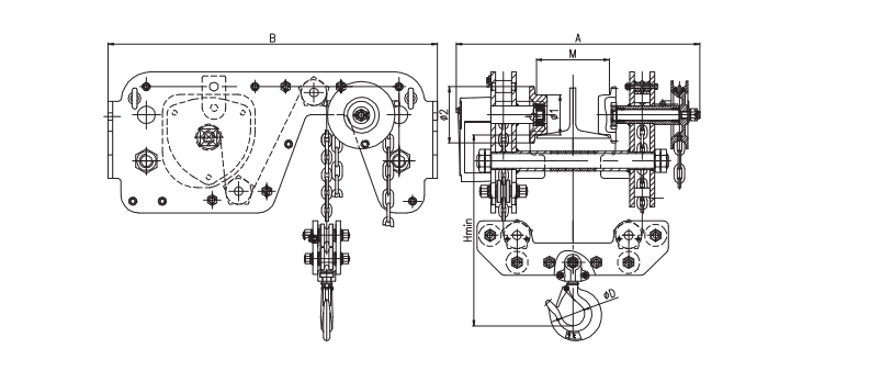 低净空手拉葫芦结构设计精巧、性能优越、外型新颖美观,符合最新国际DIN、FEM标准。适用于机械加工、装配、仓库等多种物料转运场所,尤其适用于厂房高度受限制的场所。整个结构便于拆卸、安装,检修方便,可维护性好。