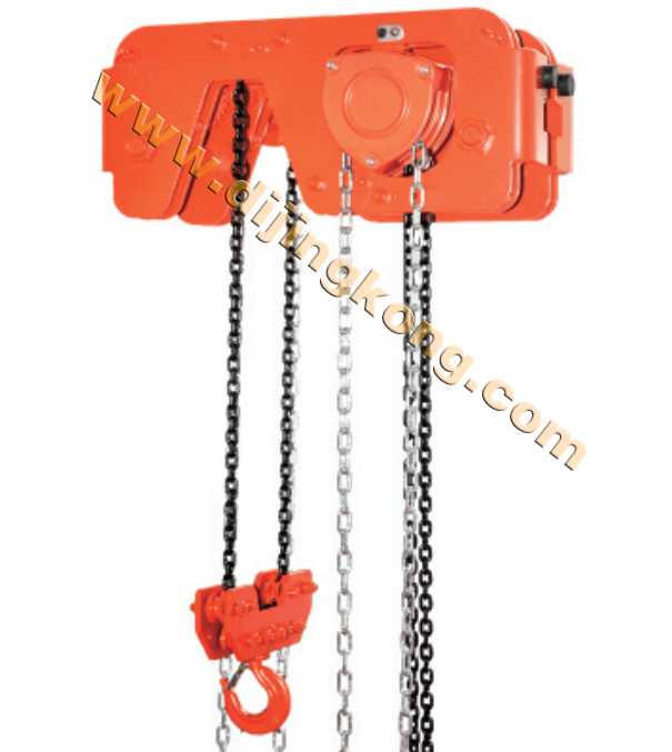 使用的时候将低净空倒链安装在工字钢梁上,将需要吊运的设备或者重物悬挂在吊钩上,然后人力拉动手拉链条,就可以将设备或者重物进行吊运。